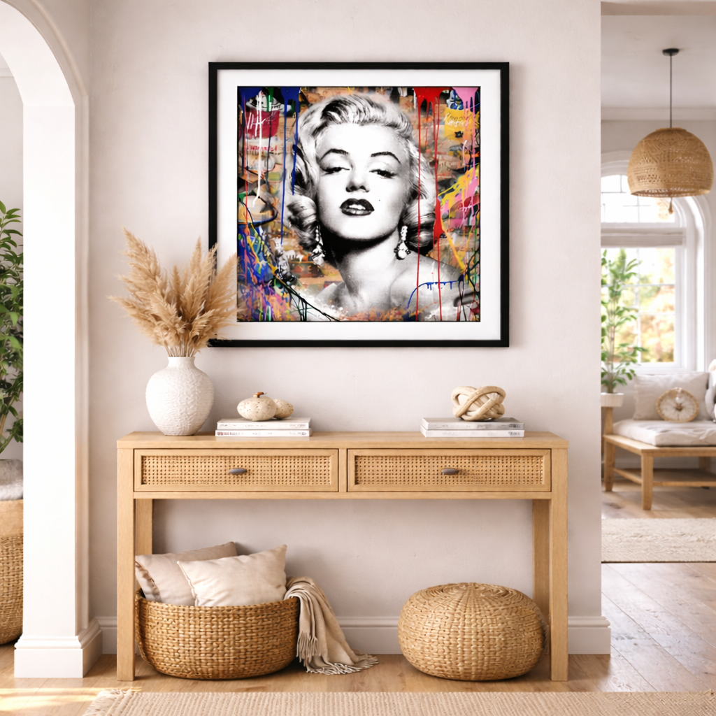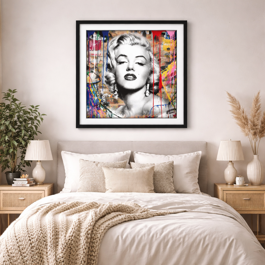 A sweet yet confident artwork where delicate beauty meets playful color splashes, perfect for cozy and stylish spaces.