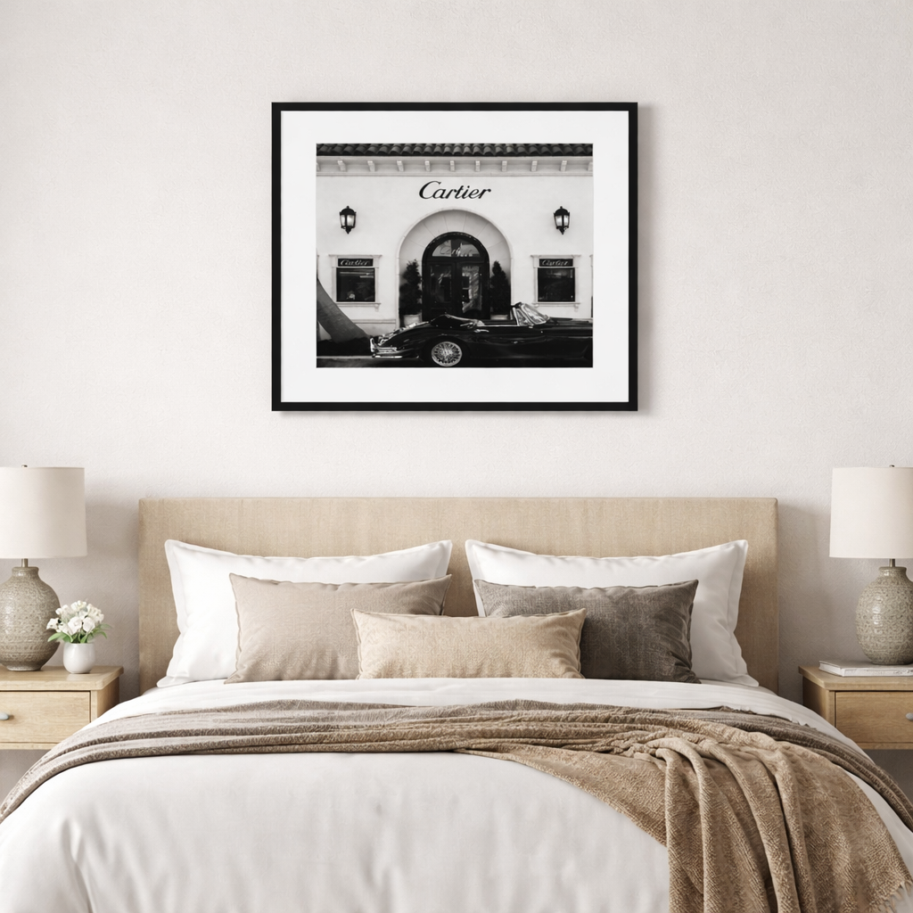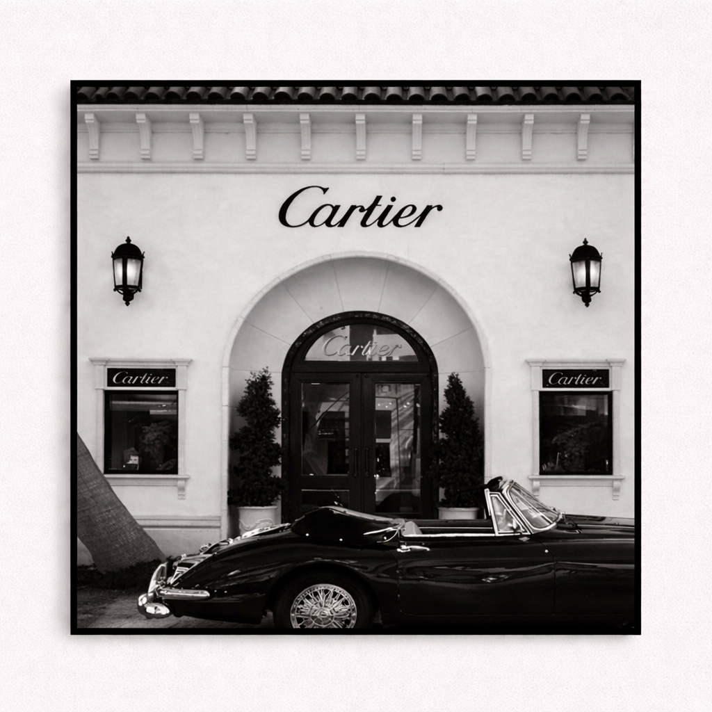 A timeless black-and-white moment capturing Parisian luxury and architectural elegance.